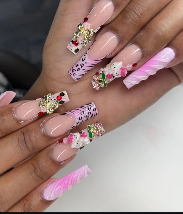 Tips are applied and shaped as desired and painted with gel nail polish. Short to medium length. Medium-long to extra-long length and specialty shapes will incur a charge.
